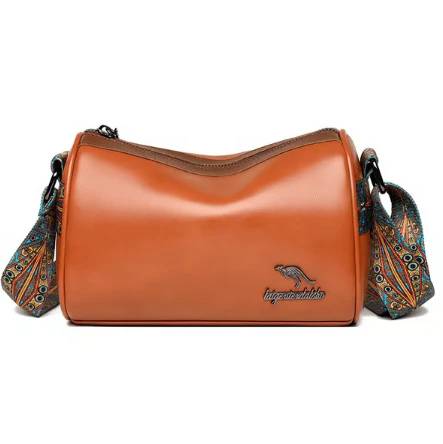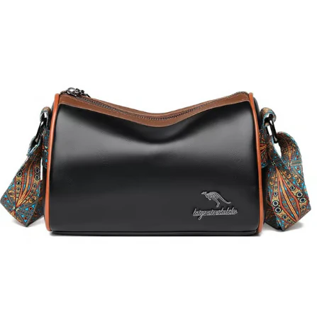 The bag features a striking patterned strap that contrasts beautifully with the rich leather. This unique detail adds a touch of individuality and makes the bag stand out from the crowd.