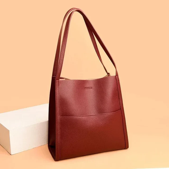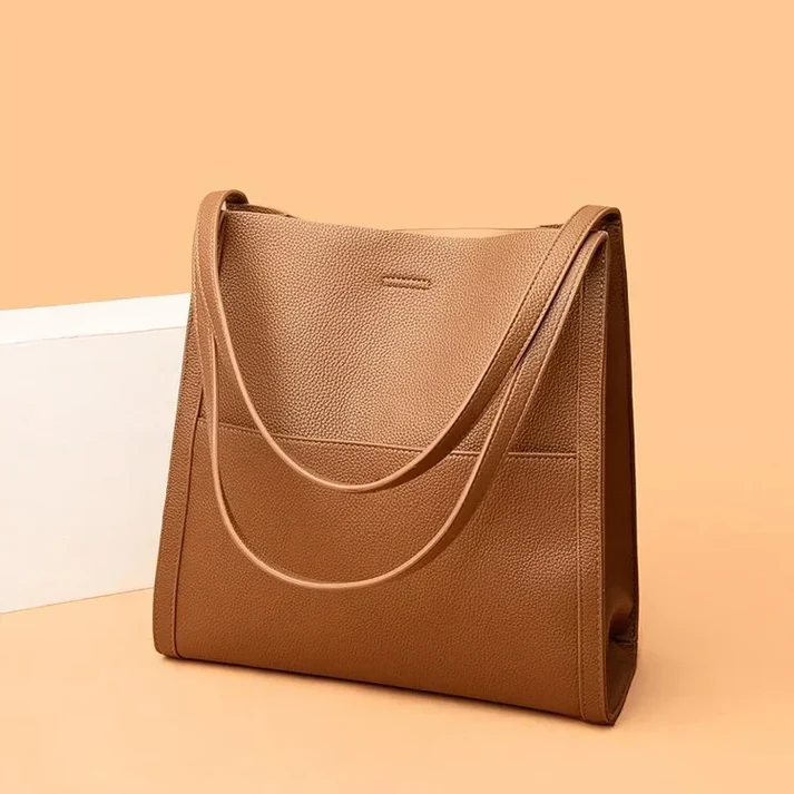 Urban tote bag boasts a sleek, minimalist design crafted from premium, rich leather. The smooth texture and refined aesthetic elevate the bag’s overall look, making it a stylish and sophisticated accessory for everyday use.